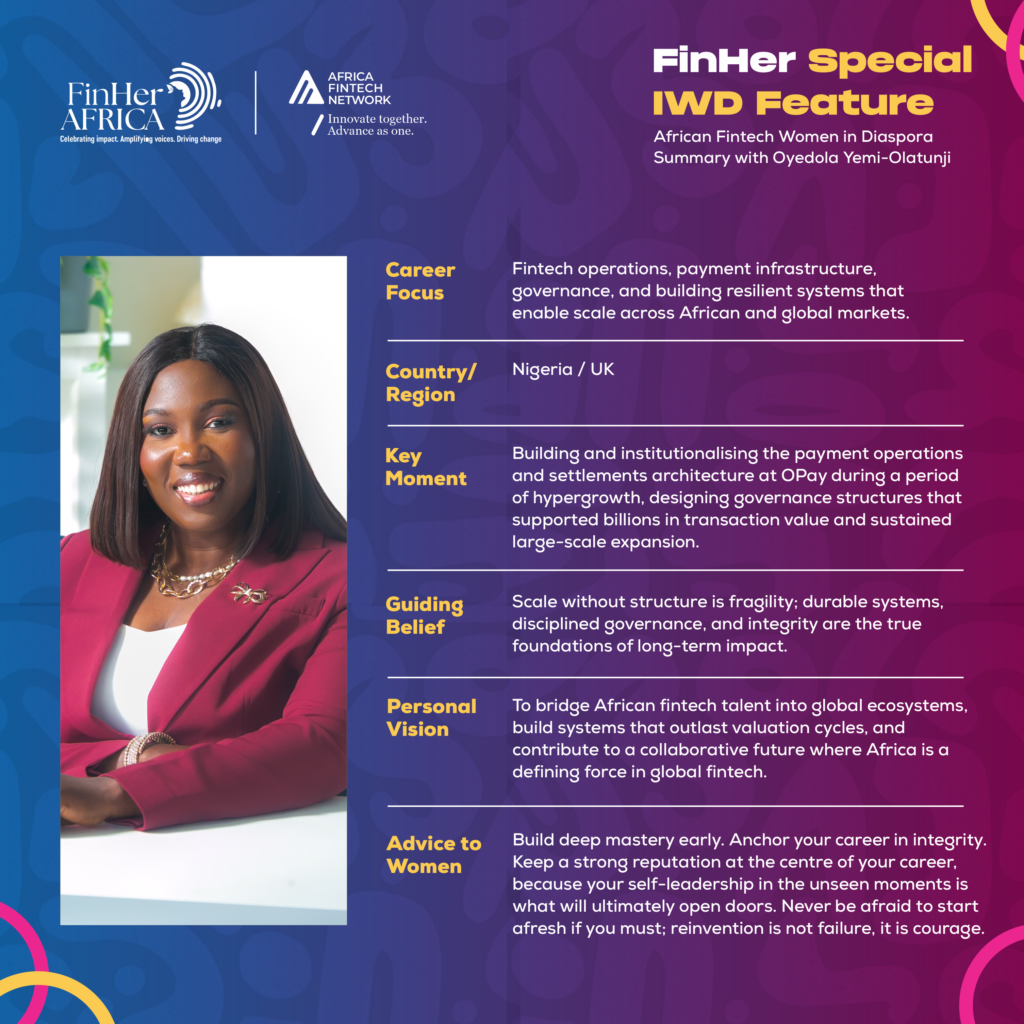 With a strong focus on payment governance, settlement architecture, and scalable operational systems, she works across African and global markets, positioning African-built expertise as a strategic contributor to institutional-scale fintech ecosystems.